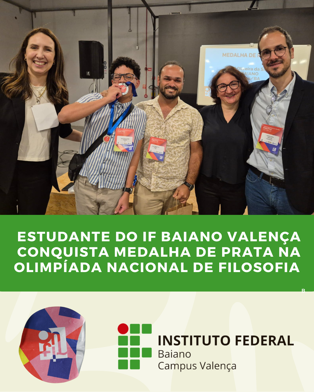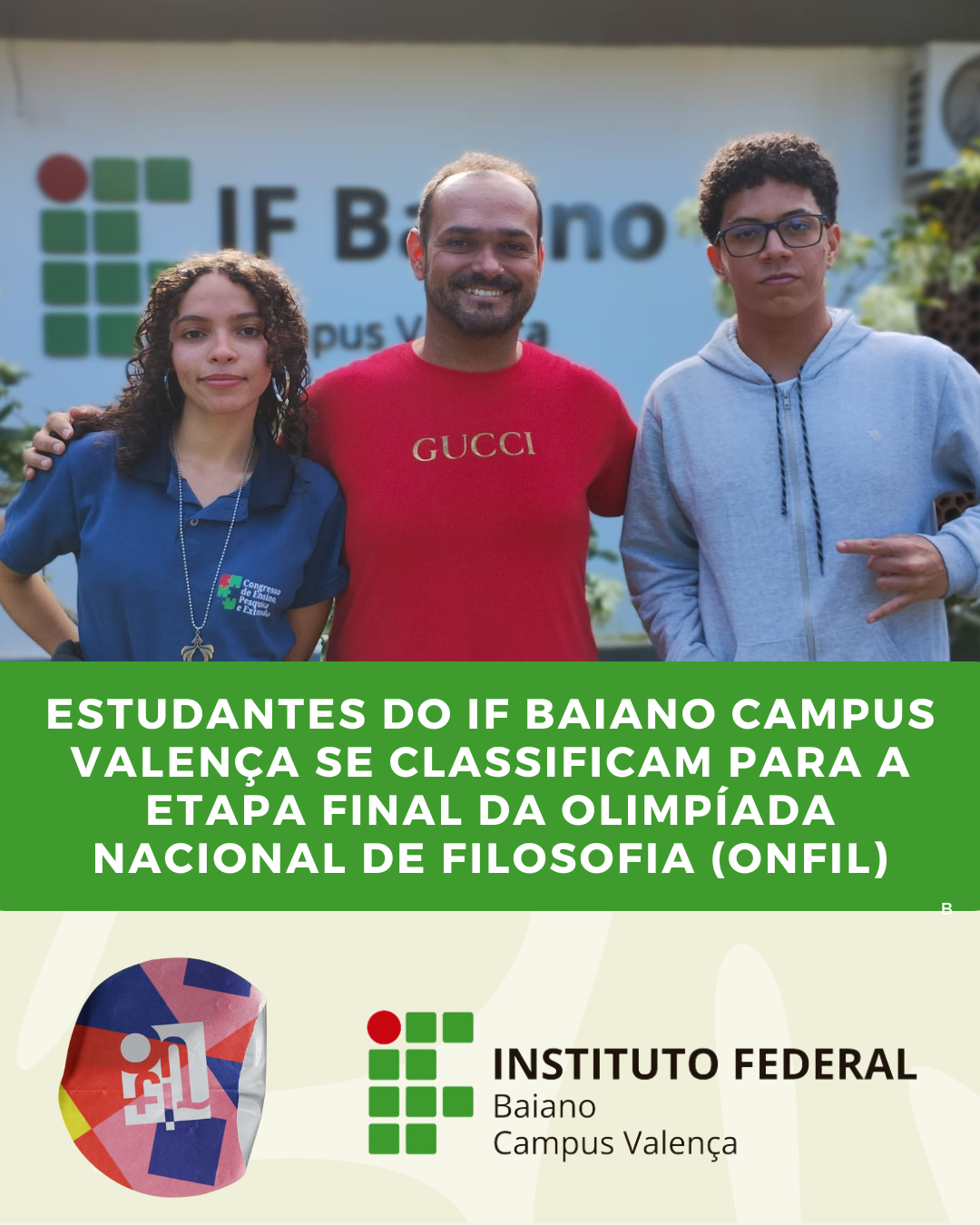A I Olimpíada Nacional de Filosofia (ONFIL) é um concurso de ensaios filosóficos escritos em língua portuguesa que foi fundada em 2024 com apoio do MCTI/CNPq. O Estudante do IF Baiano Valença, David Oliveira, conquistou a medalha de prata na Etapa regional, realizada no dia 28 de junho em todas as unidades da Federação, e conquistou o segundo lugar na Final Nacional, realizada entre os dias 17 e 20 de outubro, na Universidade Federal de Santa Maria, no Rio Grande do Sul.