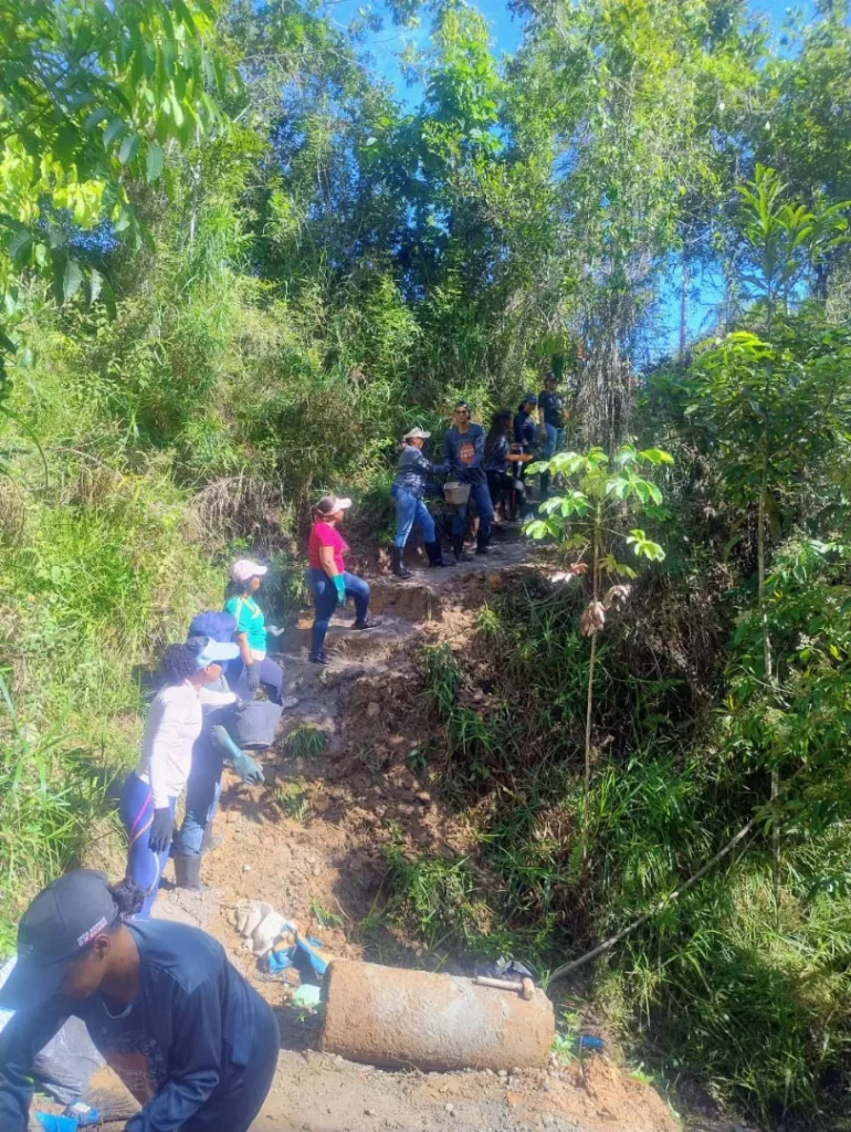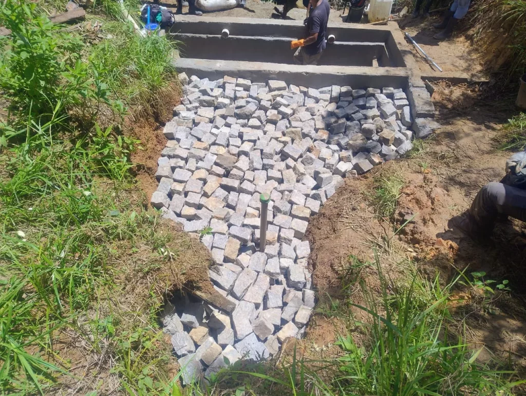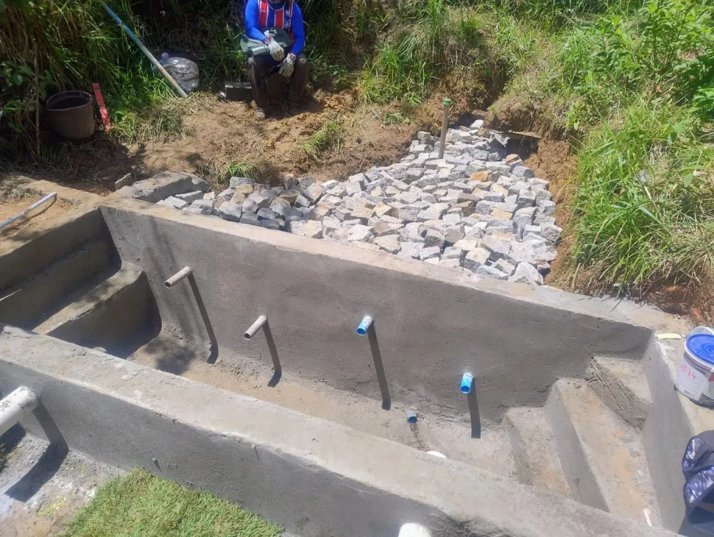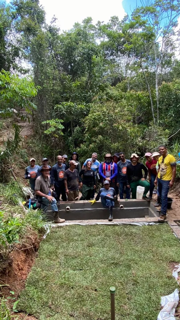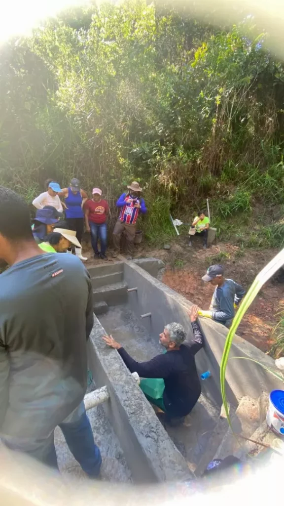 Com o objetivo de revitalizar e proteger a nascente principal de captação de água da Fazenda, o mutirão de implantação do sistema Caxambú representou uma ação estratégica de segurança hídrica e proteção ambiental das águas da Fazenda. A implantação do sistema é uma demanda histórica da UEC Aldeia, que vinha convivendo com interrupções e riscos no abastecimento de água e impactos na nascente, como assoreamento, erosão e perda da qualidade da água.