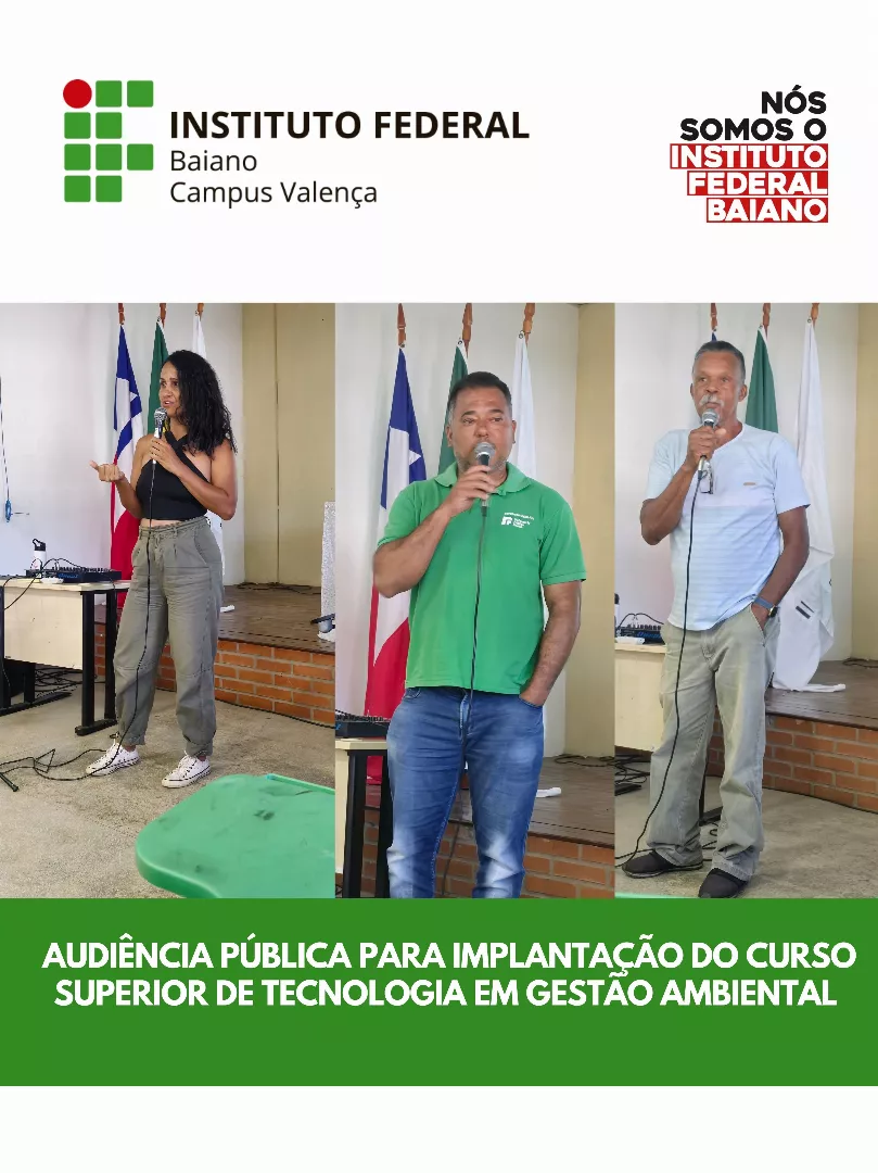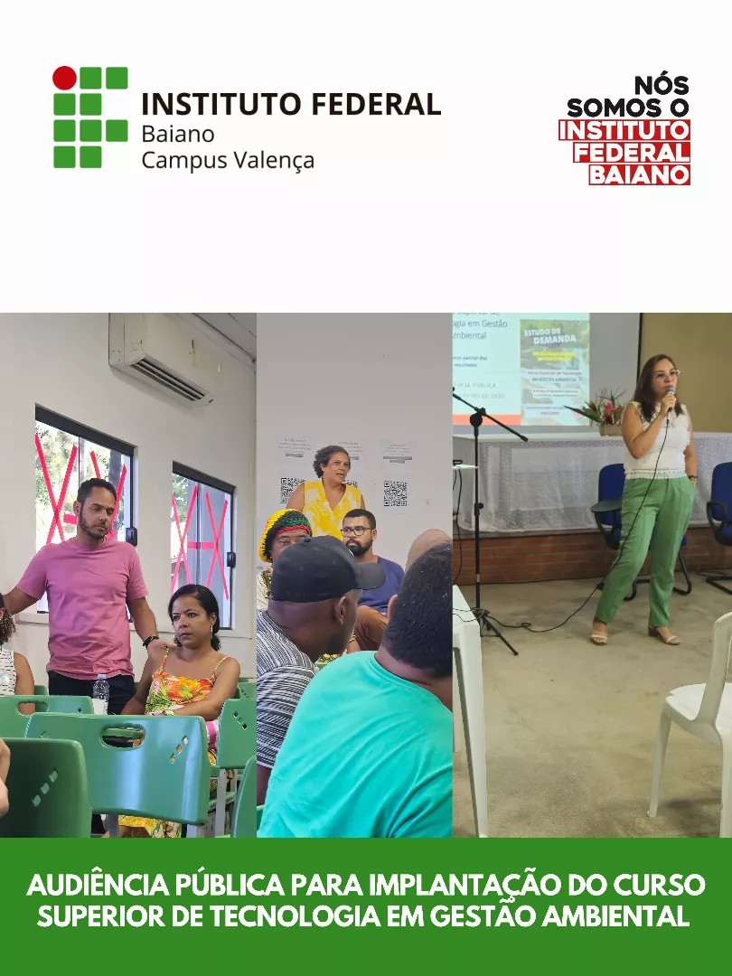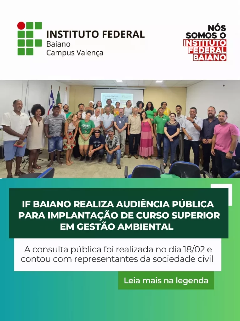 No último dia 18 de fevereiro, o IF Baiano campus Valença realizou audiência pública para apresentar os resultados do estudo de demanda sobre a proposta de implantação do Curso Superior de Tecnologia em Gestão Ambiental. Com a participação de mais de 20 organizações, entre representações do poder público, organizações sociais, empresariado, professores e estudantes, a audiência marcou um importante momento de debate sobre os problemas e desafios envolvendo as temáticas socioambientais no território do Baixo Sul. Se aprovado, será o primeiro curso superior de tecnologia do campus Valença.