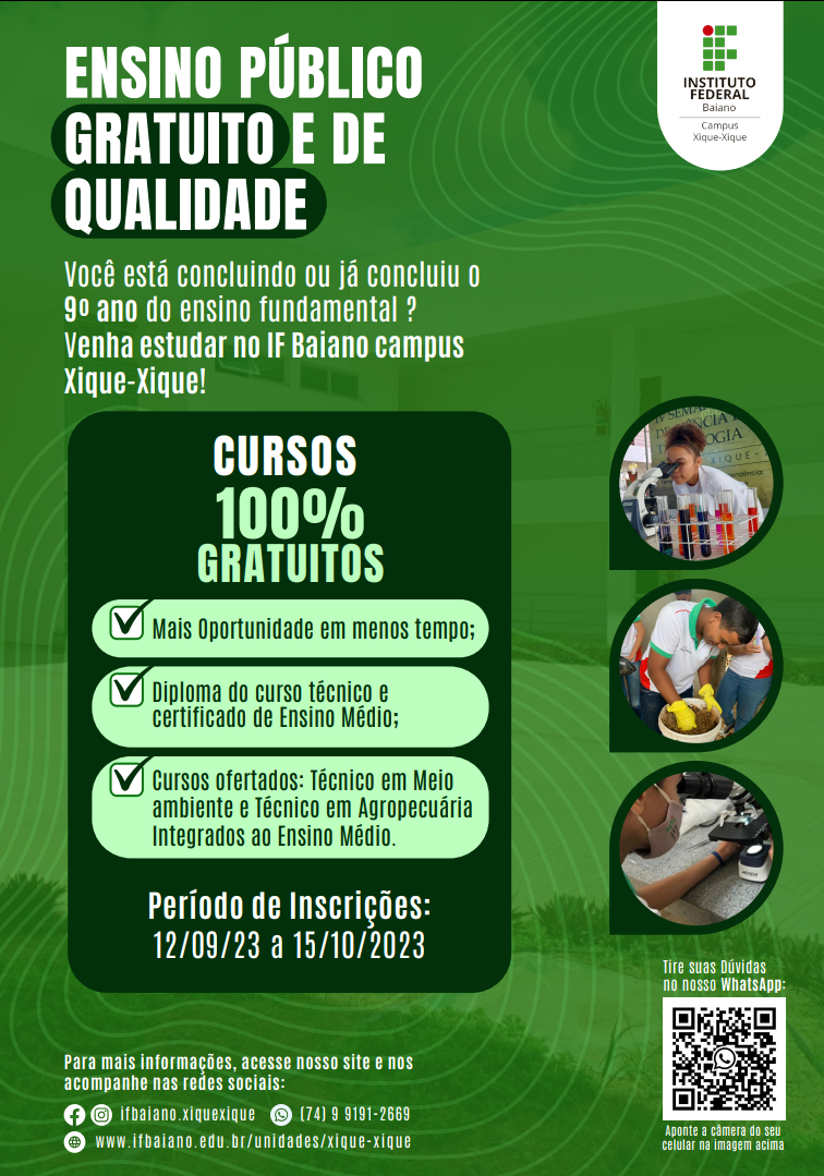 Telefone: (74) 3664-3500 Diretor-Geral: Pedro Queiroz Junior E-mail: gabinete@xique-xique.ifbaiano.edu.br