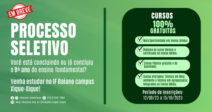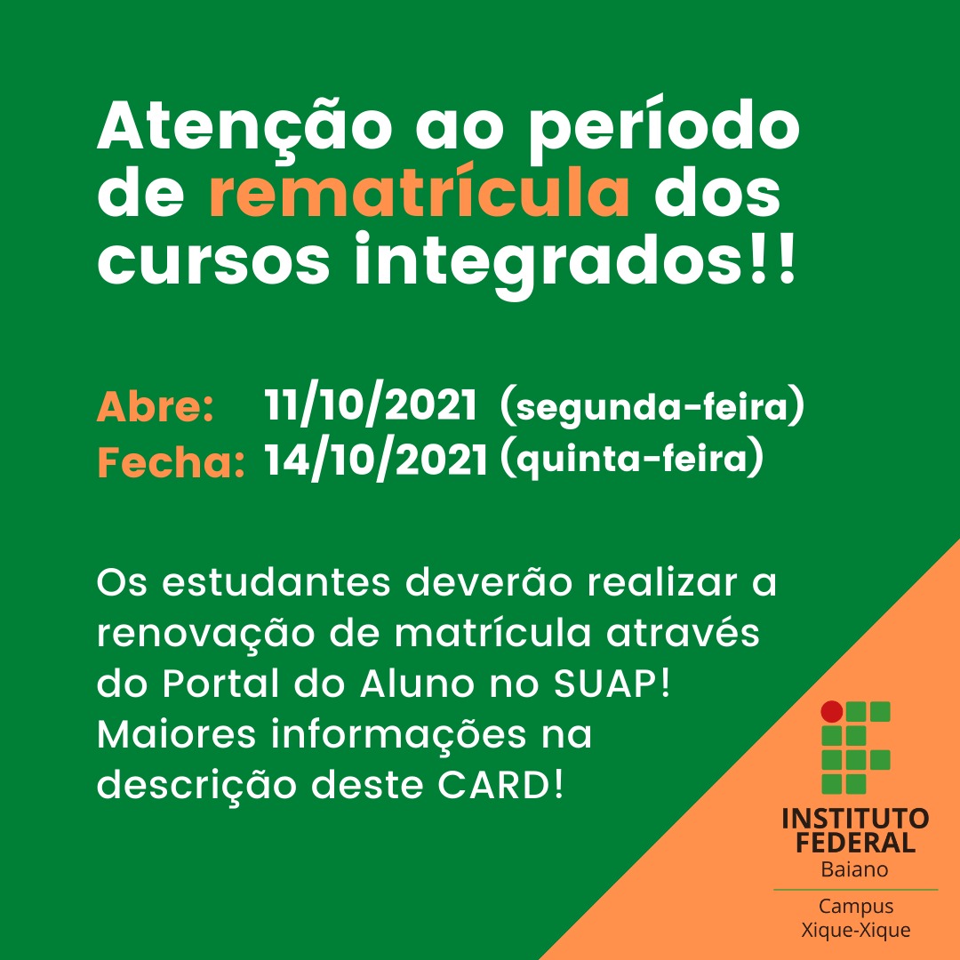 Prezados, informamos que, no dia 08 de junho de 2022, quarta-feira, considerando a atividade cultural com apresentação de quadrilhas, a ser realizada turno vespertino no Campus, as atividades acadêmicas ficarão suspensas no turno matutino, e que, no dia 09 de junho de 2022, quinta-feira, considerando os festejos locais da cidade, as atividades acadêmicas do dia […]