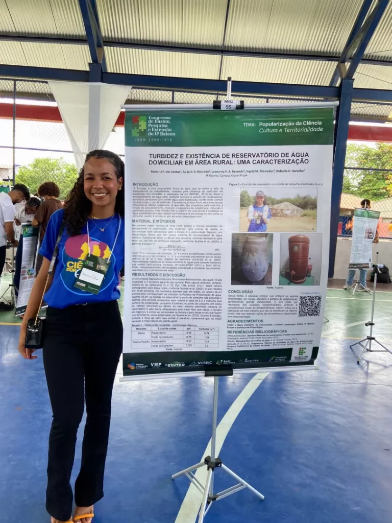 – TURBIDEZ E EXISTÊNCIA DE RESERVATÓRIO DE ÁGUA DOMICILIAR EM ÁREA RURAL: UMA CARACTERIZAÇÃO: poster apresentado na 4ª Edição do Congresso de Ensino, Pesquisa e Extensão do IF Baiano, Santo Estevão, Bahia (Figura 4), por Mariana Feitosa.