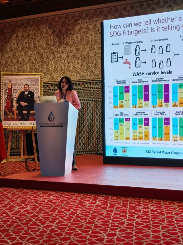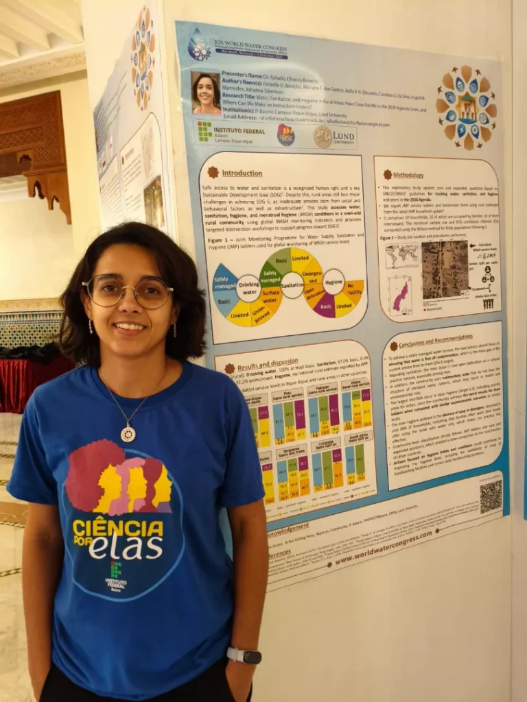 – “WASH SERVICE LEVELS IN A SEMI-ARID RURAL COMMUNITY: APPLYING JMP LADDERS TO ASSESS PROGRESS TOWARDS THE 2030 AGENDA”: 3 minutes pitch, apresentado no Early-Career Lightning Talk and Networking Event no XIX World Water Congress, Marrakesh, Marrocos, por Rafaella Baracho (Figura 8).